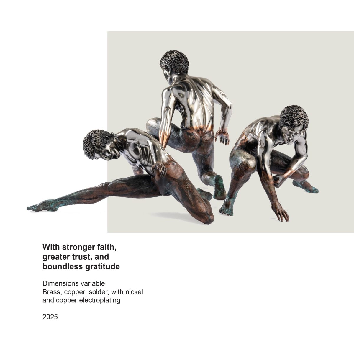Henley’s poem, often read as a monument to existential grit, is reimagined here as a passage “from self-reliance to reliance on Christ.” The expressive motions of dela Cruz’s figures suggest that the true measure of inner fortitude is not enclosed within the self but expressed outward, cast into the larger universe as an act of devotion. As the artist explains, “This dialogue between self-will and divine surrender becomes the foundation of each piece”—a dialectic that gives shape to bodies striving yet yielding, ascending yet anchored in grace.